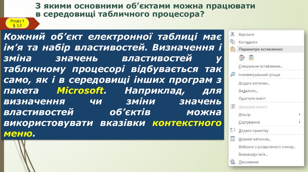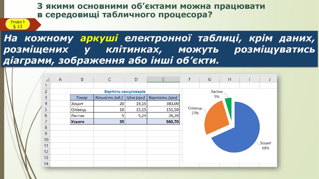 Електронні таблиці та їхні об’єктиРозділ 3