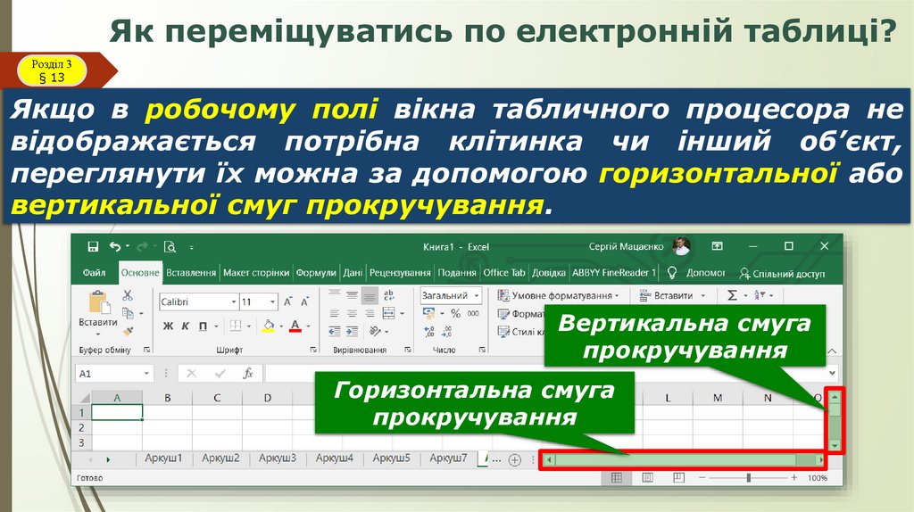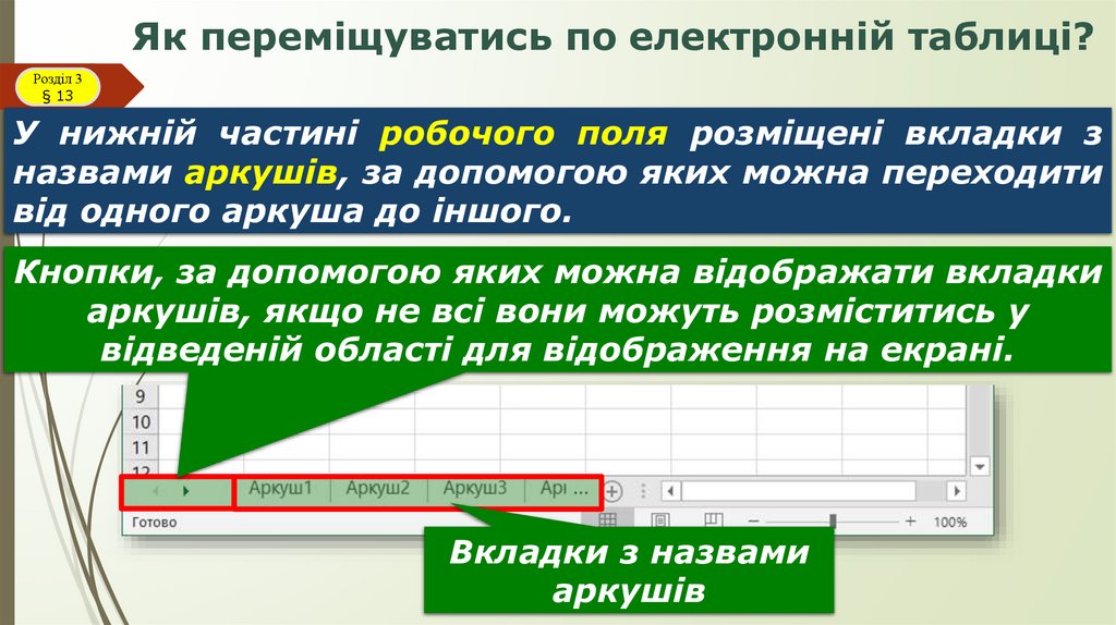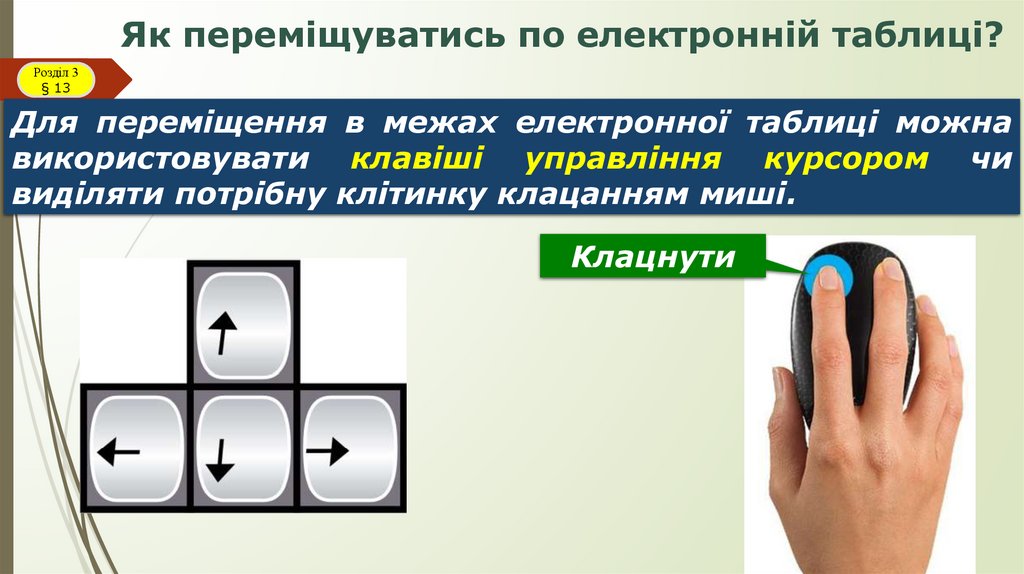● як переміщуватись по електронній таблиці;