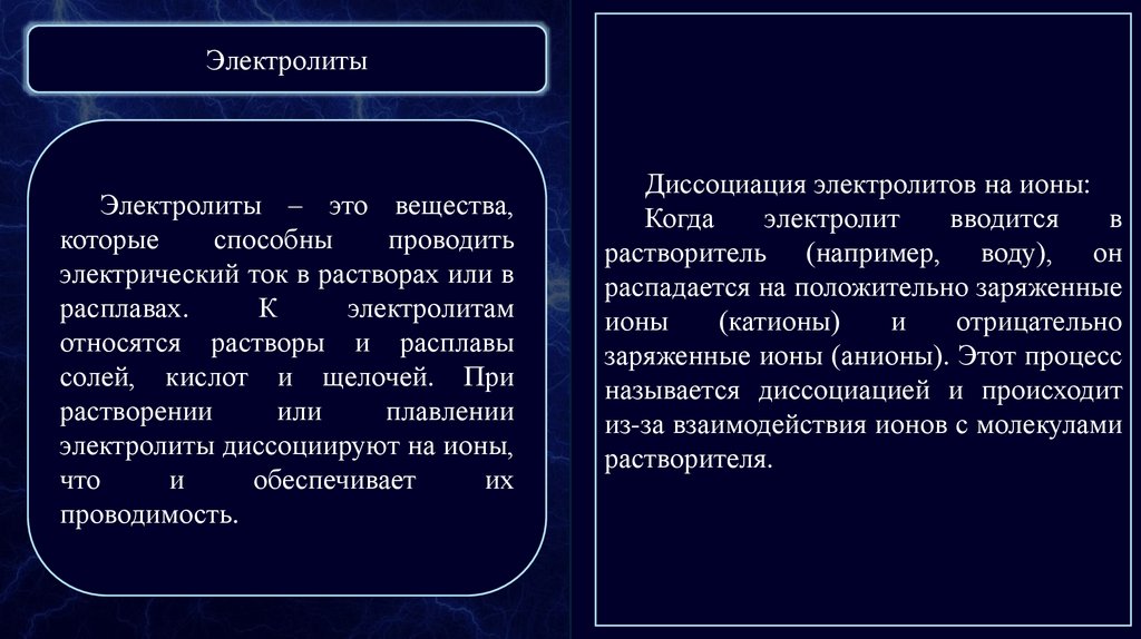 ЭлектролитыЭлектролиты – это вещества,