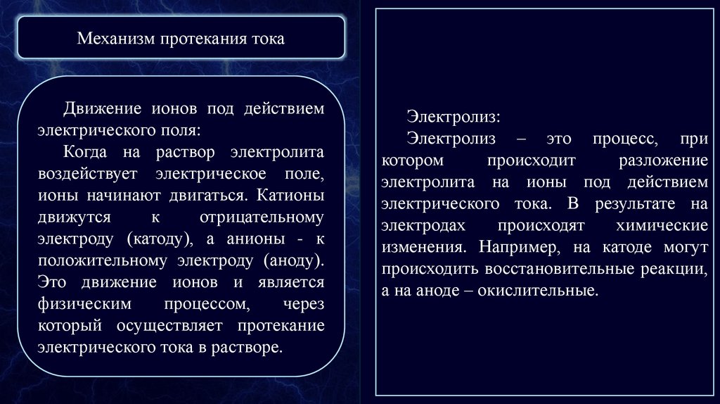 Механизм протекания токаДвижение ионов под действием
