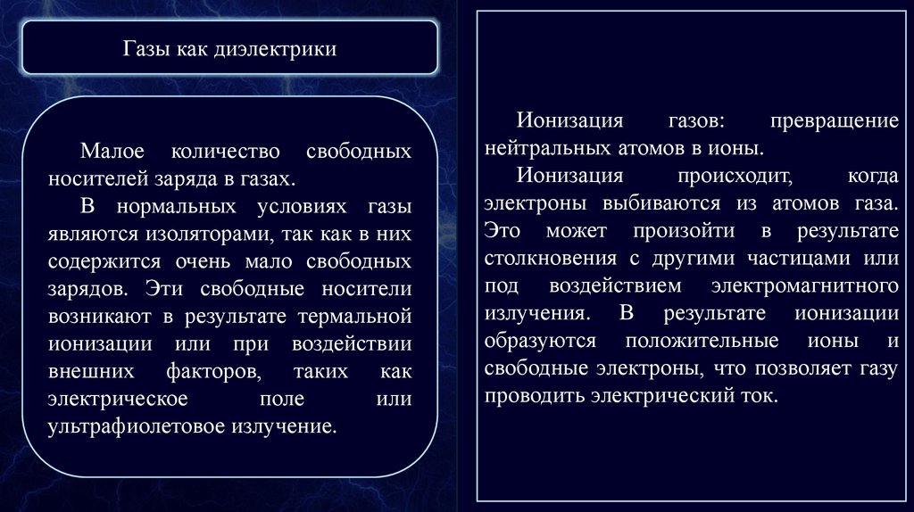 Газы как диэлектрикиМалое количество свободных