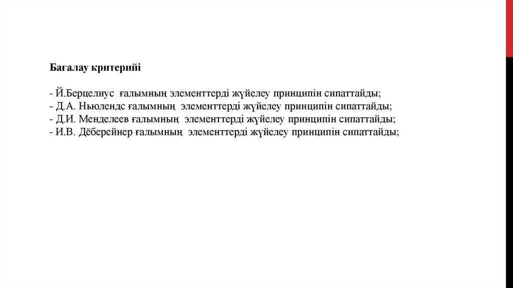 Бағалау критерийі- Й.Берцелиус ғалымның элементтерді жүйелеу принципін сипаттайды;