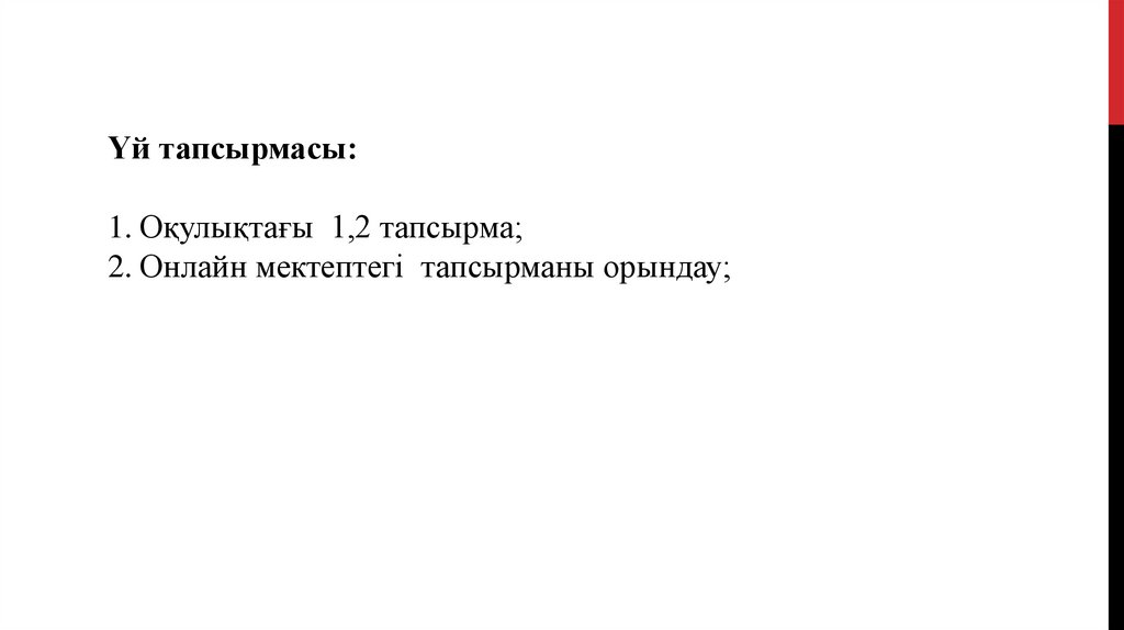 Үй тапсырмасы:1. Оқулықтағы 1,2 тапсырма;