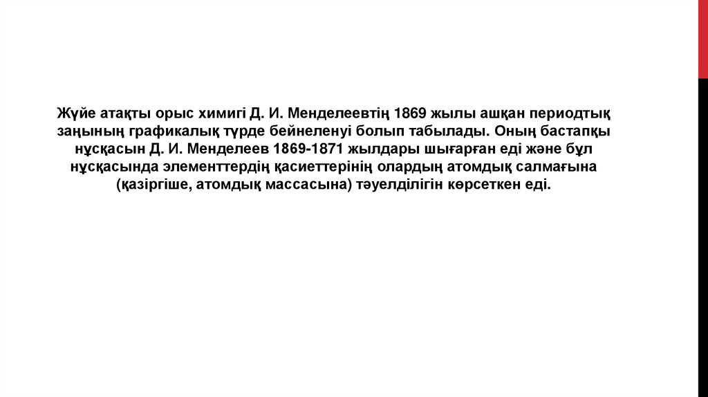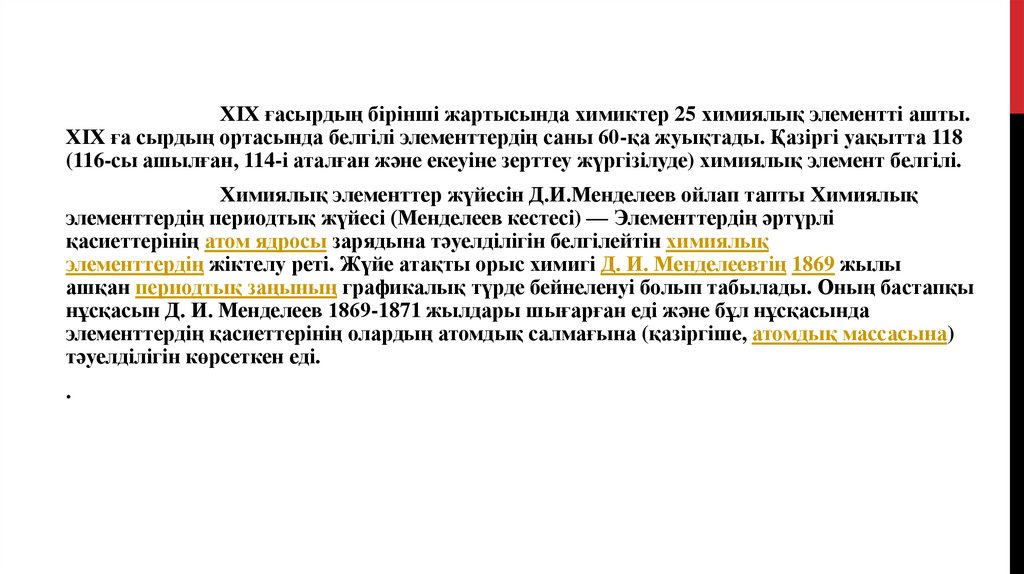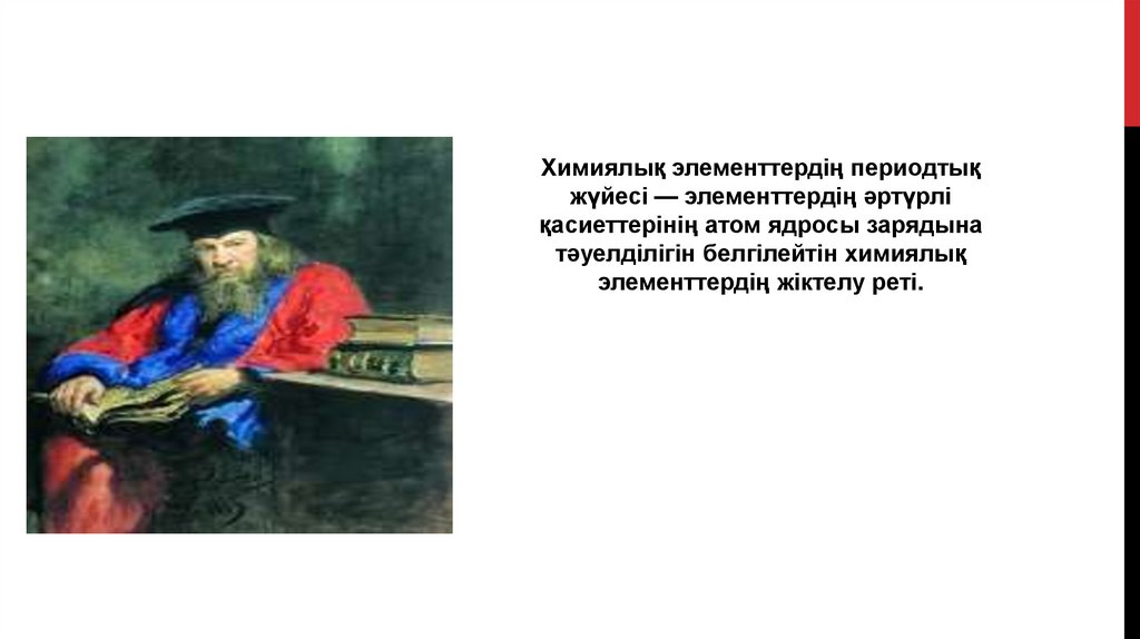 - Д.И. Менделеев ғалымның элементтерді жүйелеу принципін сипаттайды;