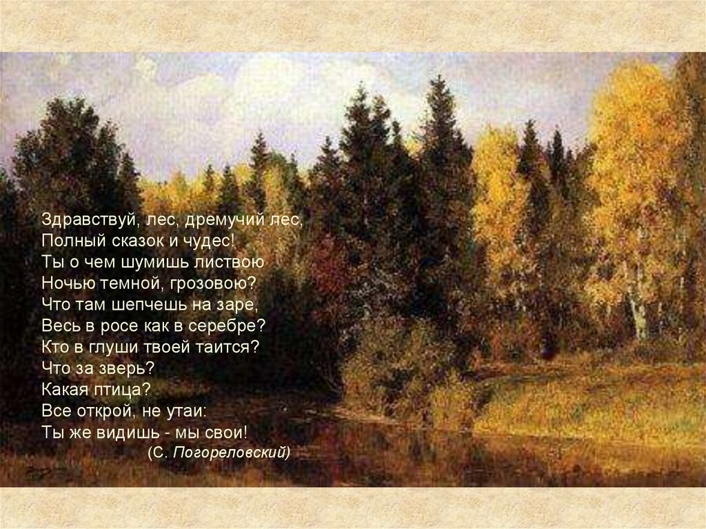 Здравствуй, лес, дремучий лес,Полный сказок и чудес!