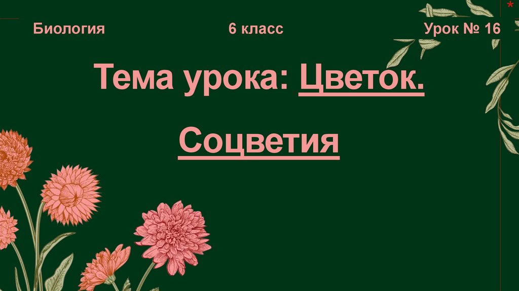 1. Тема урока: Цветок. Соцветия