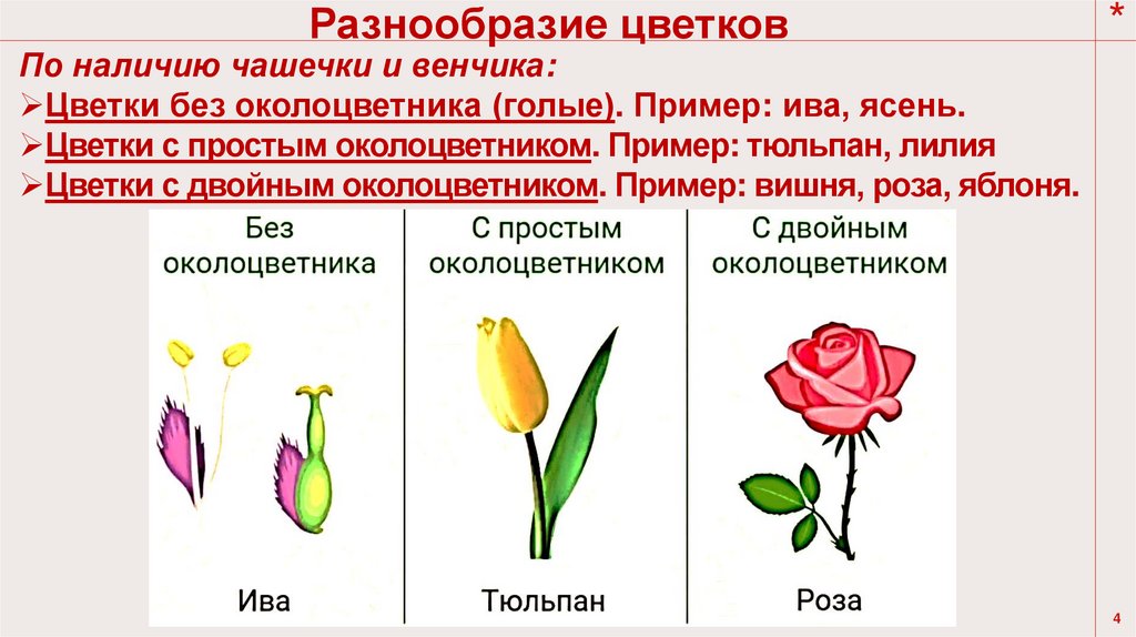 Разнообразие цветковПо наличию чашечки и венчика: