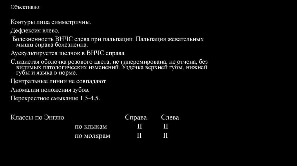 Перекрестное смыкание в области 1.5-4.510. 2 класс смыкания Энгля справа и слева.