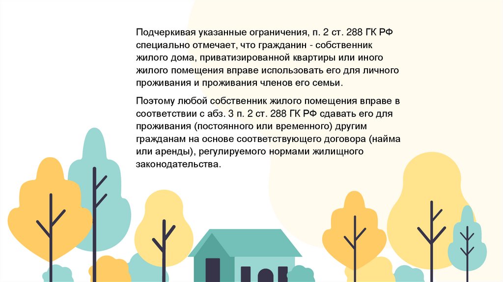 Подчеркивая указанные ограничения, п. 2 ст. 288 ГК РФспециально отмечает, что гражданин - собственник