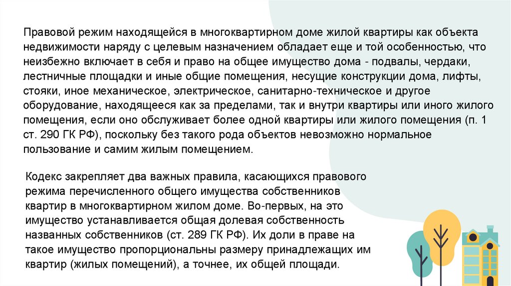 жилье (п. 2 ст. 290). В этом и состоит второе важное положение, определяющее специфику правового