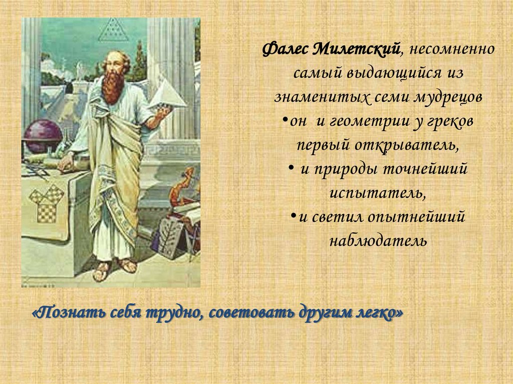 Фалес Милетский, несомненносамый выдающийся из