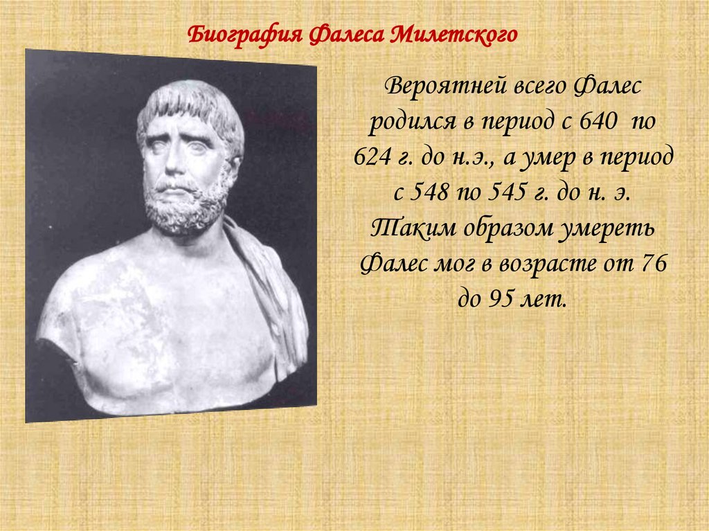 Биография Фалеса МилетскогоВероятней всего Фалес