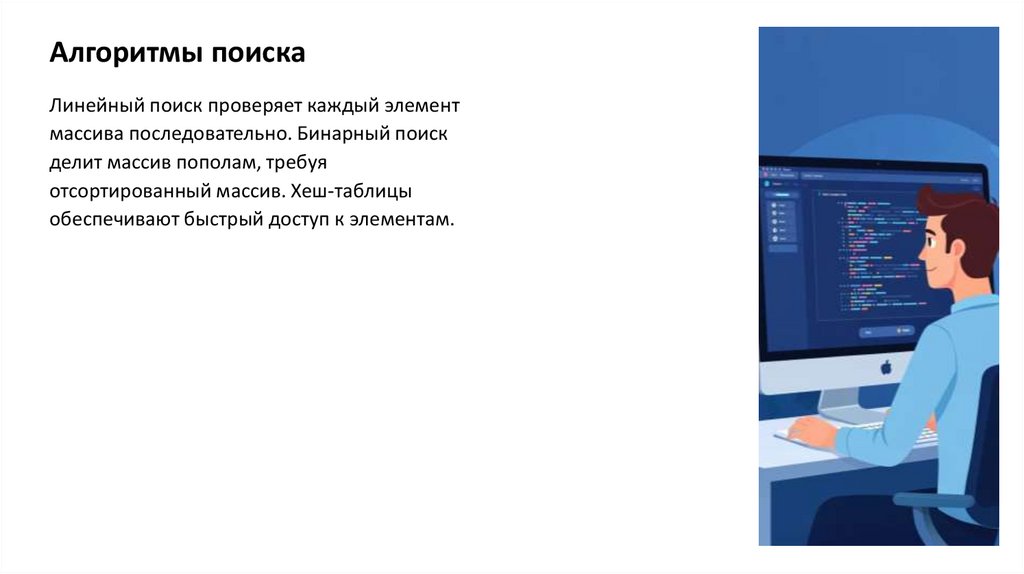 Алгоритмы поискаЛинейный поиск проверяет каждый элемент