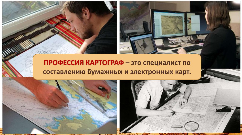 ПРОФЕССИЯ КАРТОГРАФ – это специалист посоставлению бумажных и электронных карт.