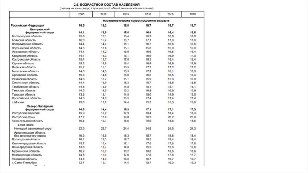 страницы в отчее 51-56, установите тенденции изменения возрастного состава (долей