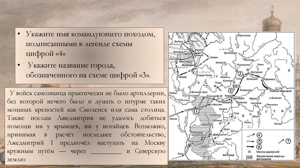 • 5. Поход на Москву, обозначенный на схеме точечными стрелками, возглавлял