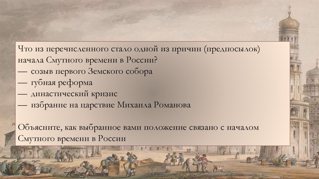 Что из перечисленного стало одной из причин (предпосылок)начала Смутного времени в России?