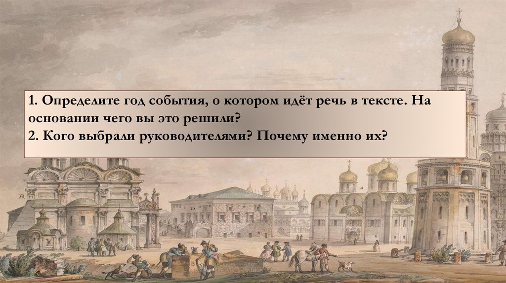 1. Определите год события, о котором идёт речь в тексте. Наосновании чего вы это решили?