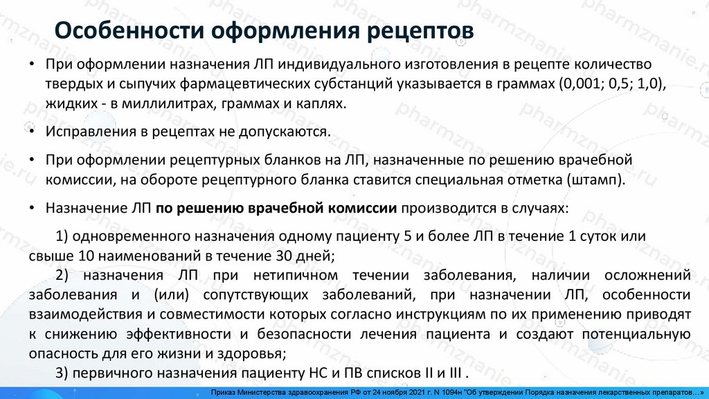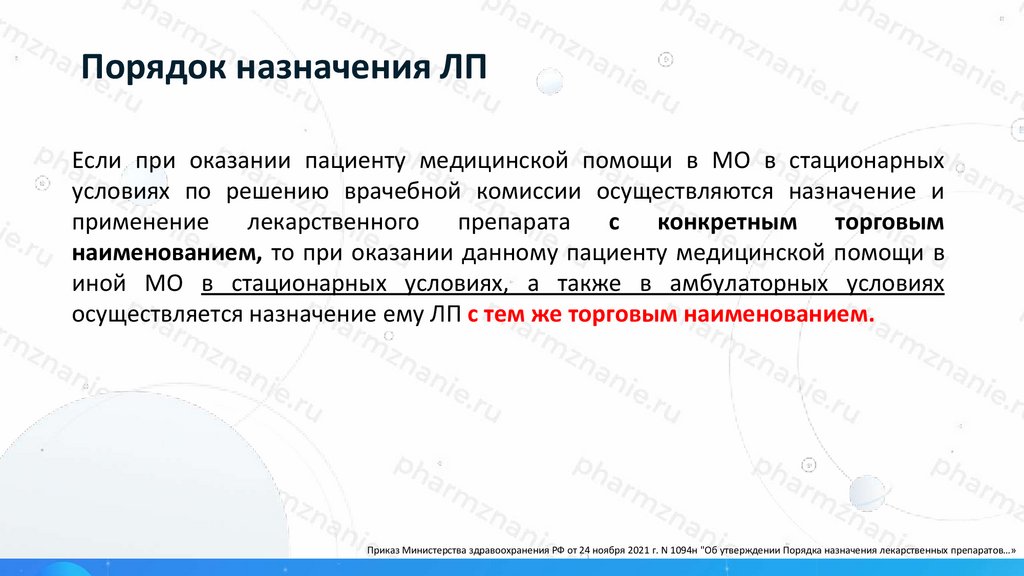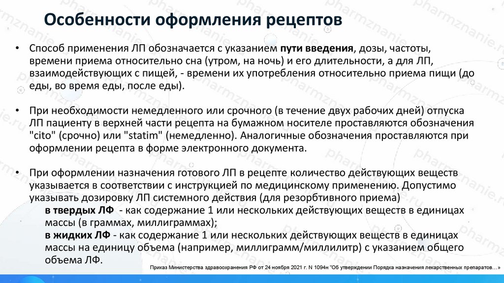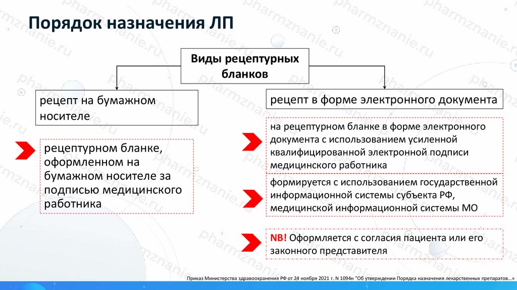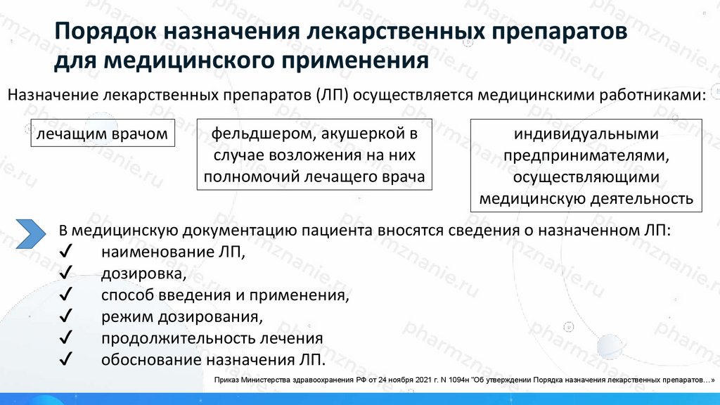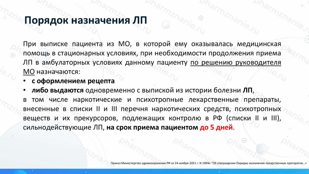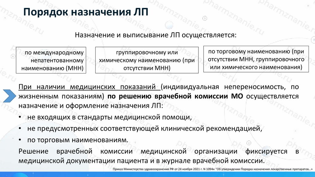Приказ Министерства здравоохранения РФ от 24 ноября 2021 г. N 1094н "Об утверждении Порядка назначения лекарственных препаратов…»