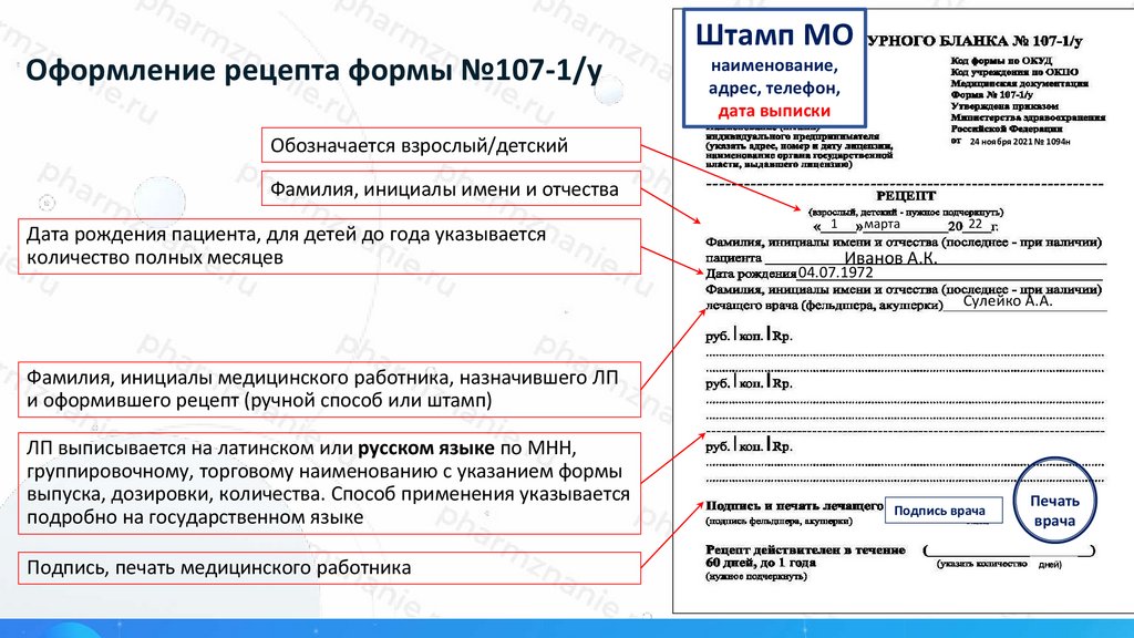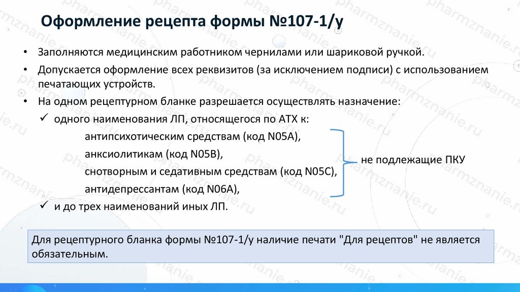 оформления рецептурных бланков на