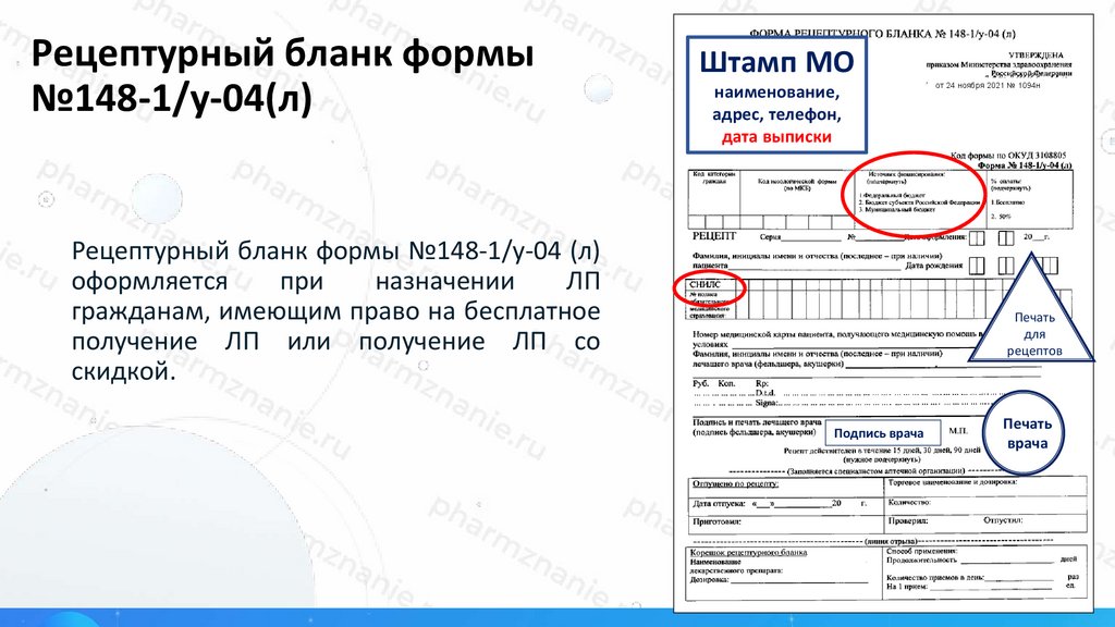Рецепт на ЛП- медицинский документ установленной формы, содержащий назначение ЛП для