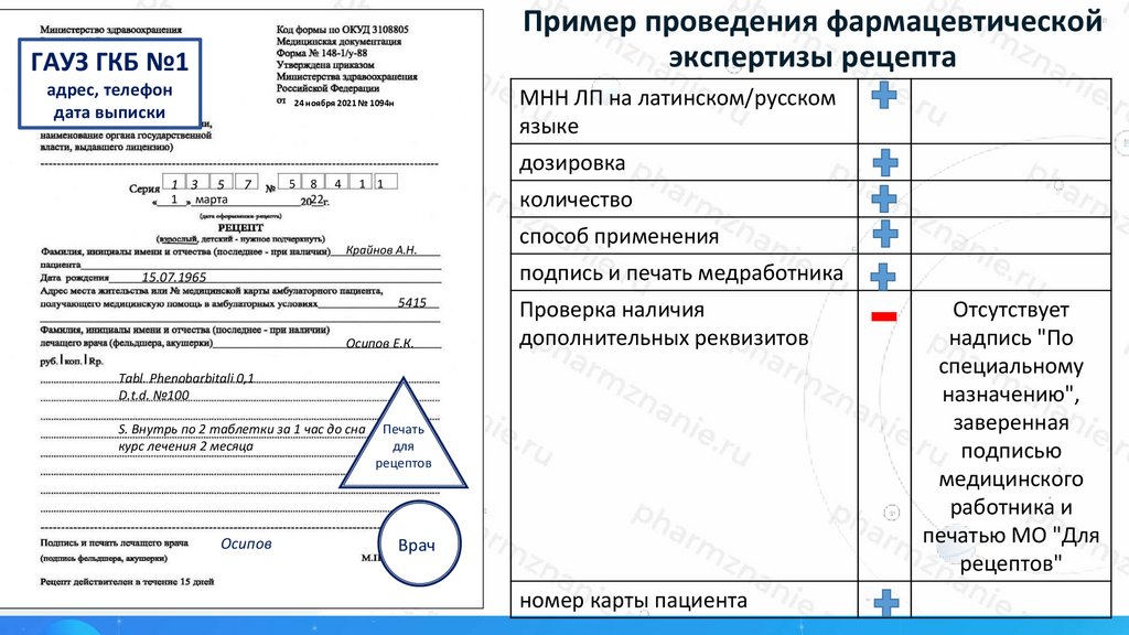 Фармацевтическая экспертиза рецептов