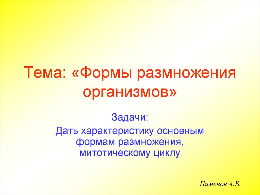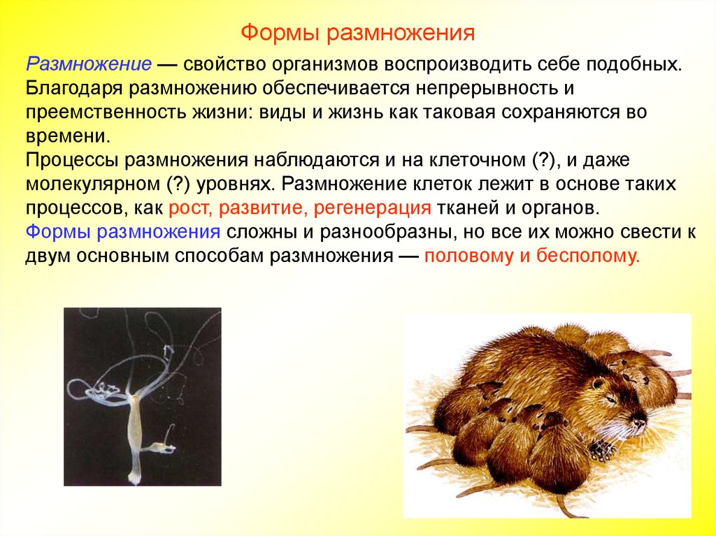Формы размноженияРазмножение — свойство организмов воспроизводить себе подобных.