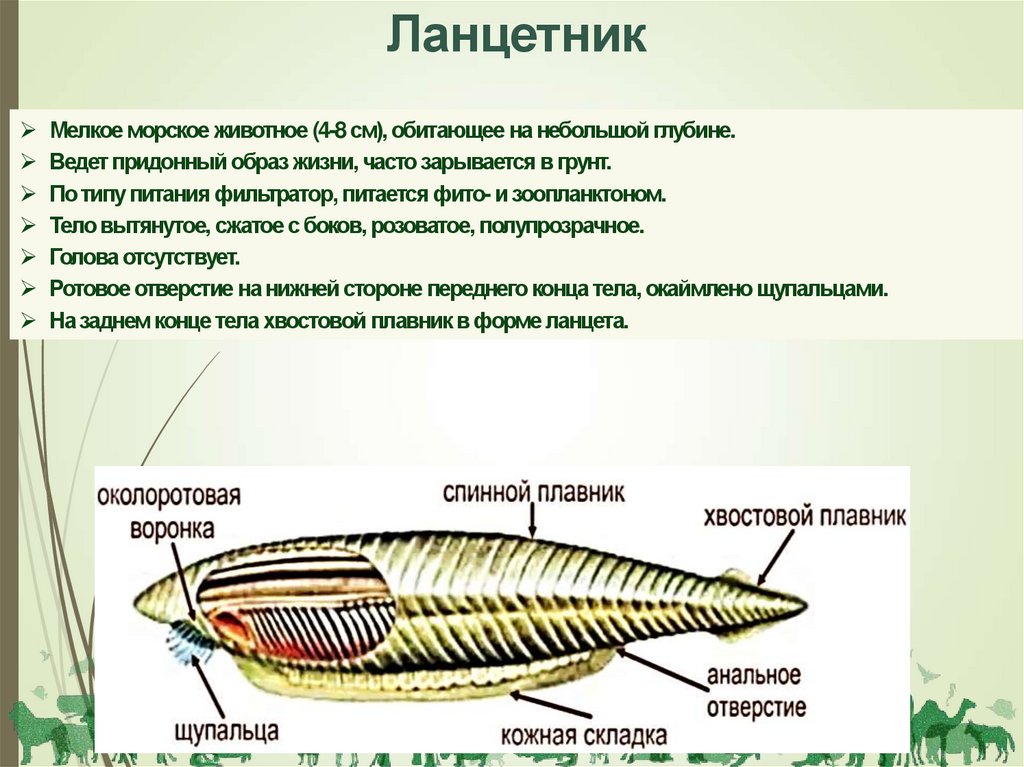 ЛанцетникМелкое морское животное (4-8 см), обитающее на небольшой глубине.