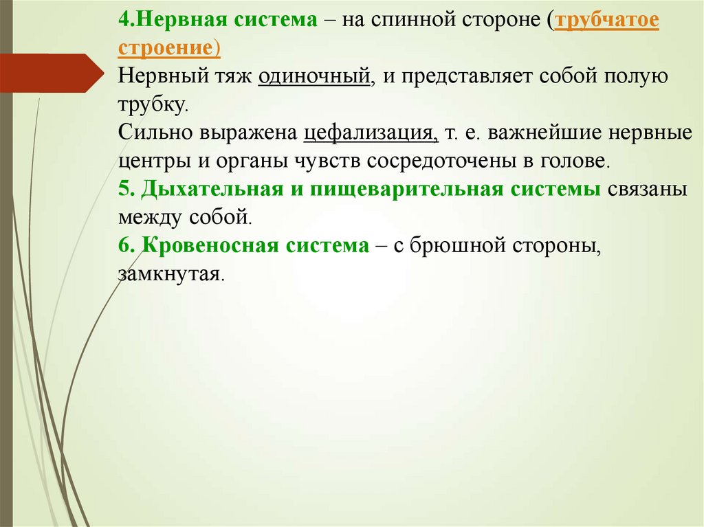 4.Нервная система – на спинной стороне (трубчатоестроение)