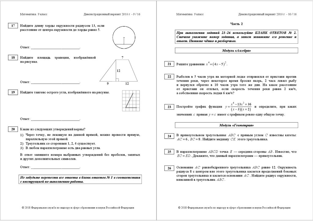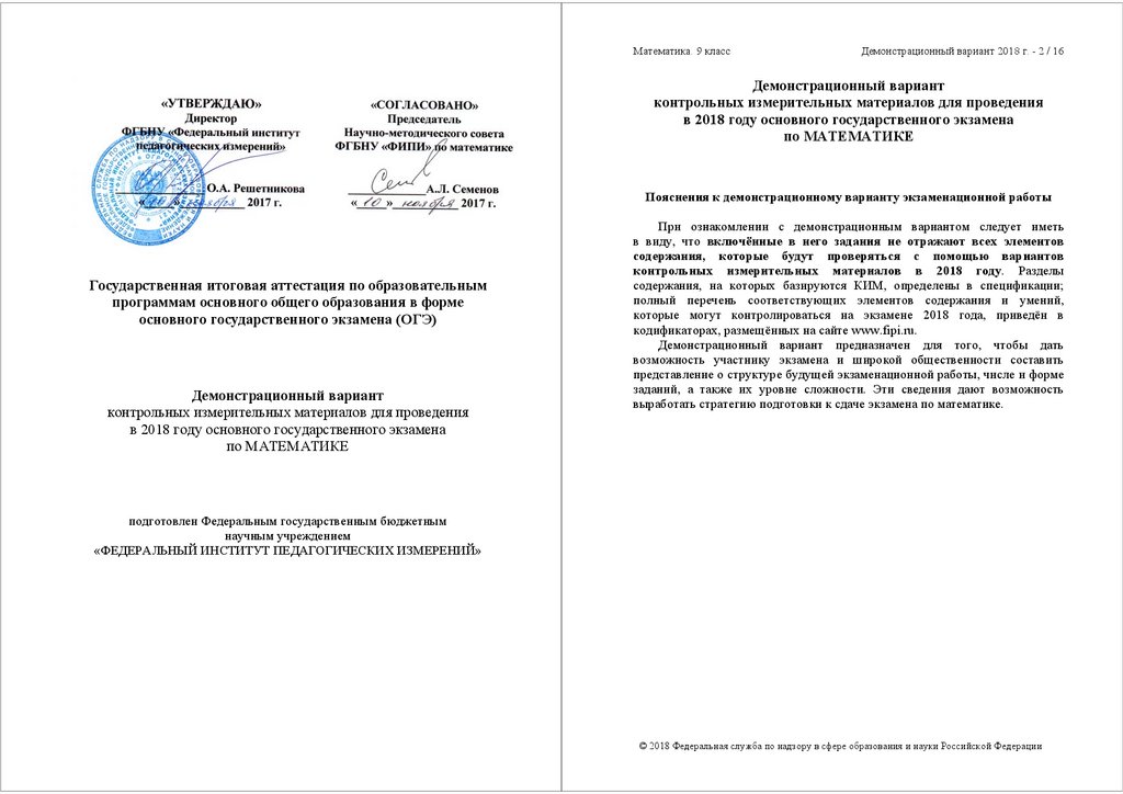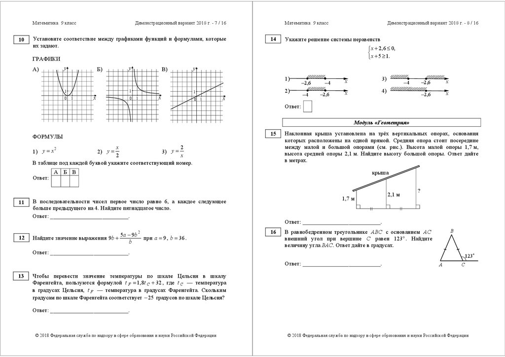 Математика. 9 классДемонстрационный вариант 2018 г. - 2 / 16