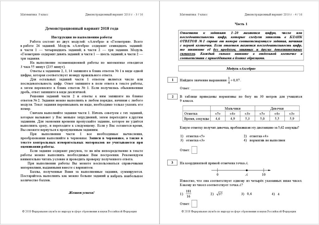 Математика. 9 классДемонстрационный вариант 2018 г. - 3 / 16