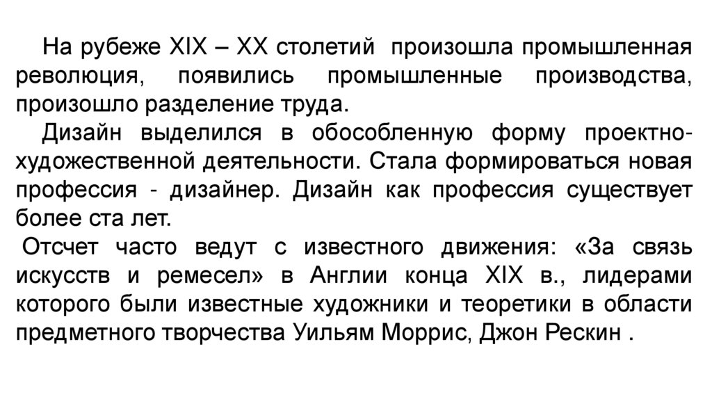 Дизайн выделился в обособленную форму проектнохудожественной деятельности. Стала формироваться новая