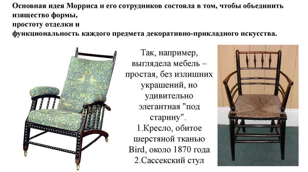 Основная идея Морриса и его сотрудников состояла в том, чтобы объединитьизящество формы,
