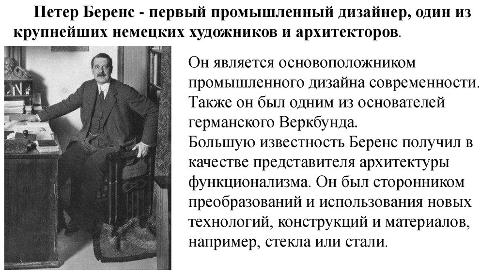 создания мебели и применил ее в фабричном производстве.