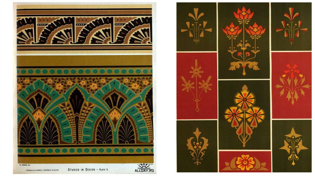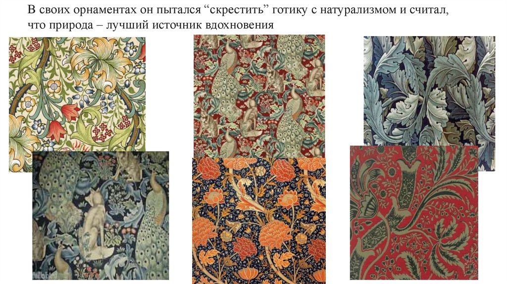 В своих орнаментах он пытался “скрестить” готику с натурализмом и считал,что природа – лучший источник вдохновения