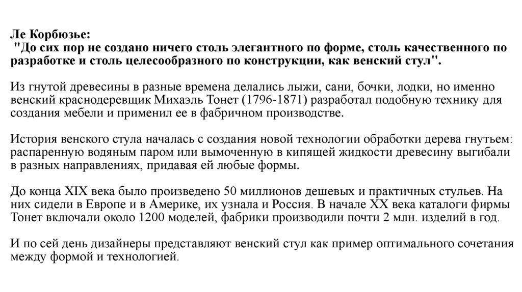 разработке и столь целесообразного по конструкции, как венский стул".