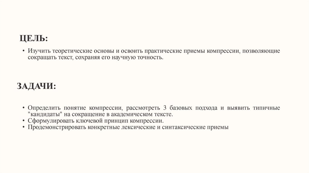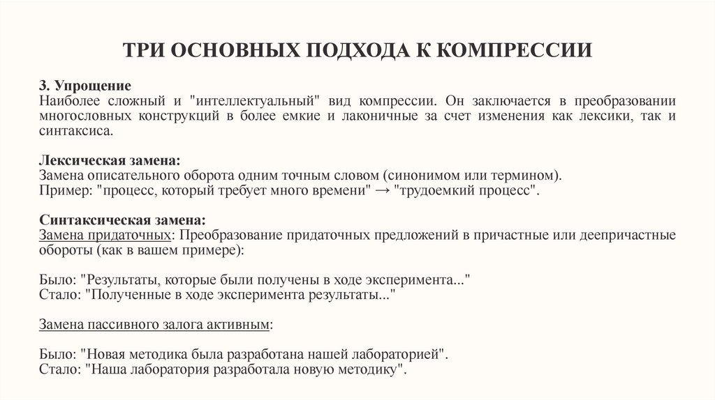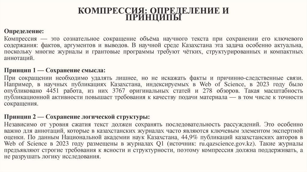 Компрессия — это сознательное сокращение объёма научного текста при сохранении его ключевого
