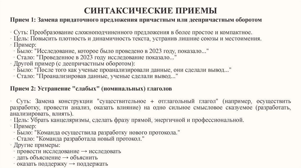 синтаксические приемы позволяют сделать текст короче на 25–40% без искажения