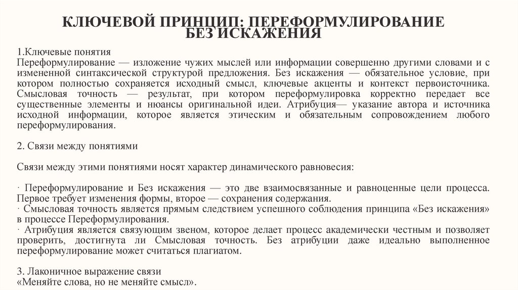 КЛЮЧЕВОЙ ПРИНЦИП: ПЕРЕФОРМУЛИРОВАНИЕБЕЗ ИСКАЖЕНИЯ