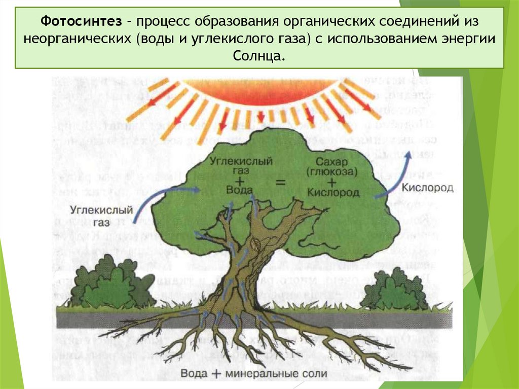 Фотосинтез – процесс образования органических соединений изнеорганических (воды и углекислого газа) с использованием энергии