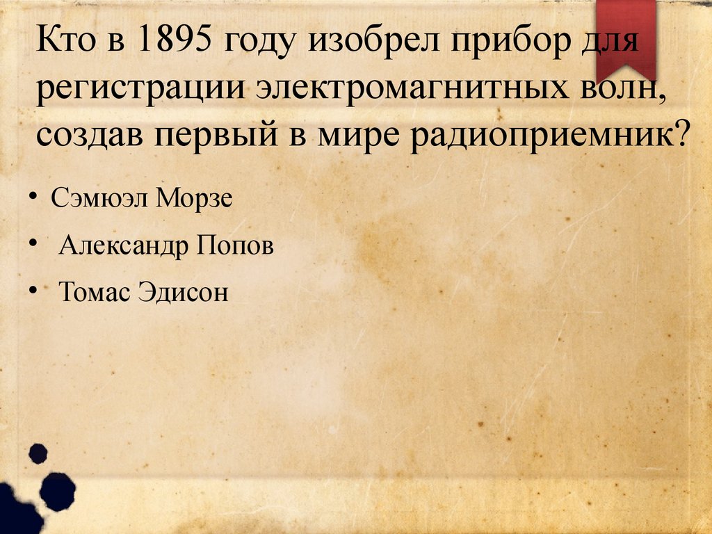 Кто в 1895 году изобрел прибор длярегистрации электромагнитных волн,