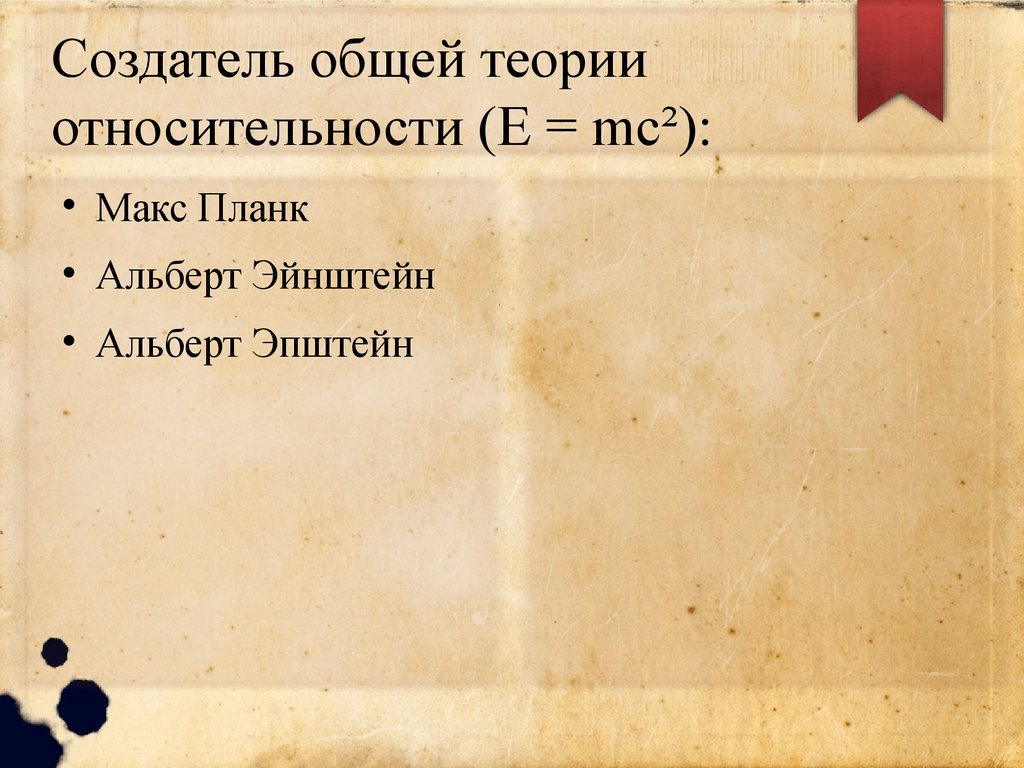 Создатель общей теорииотносительности (E = mc²):