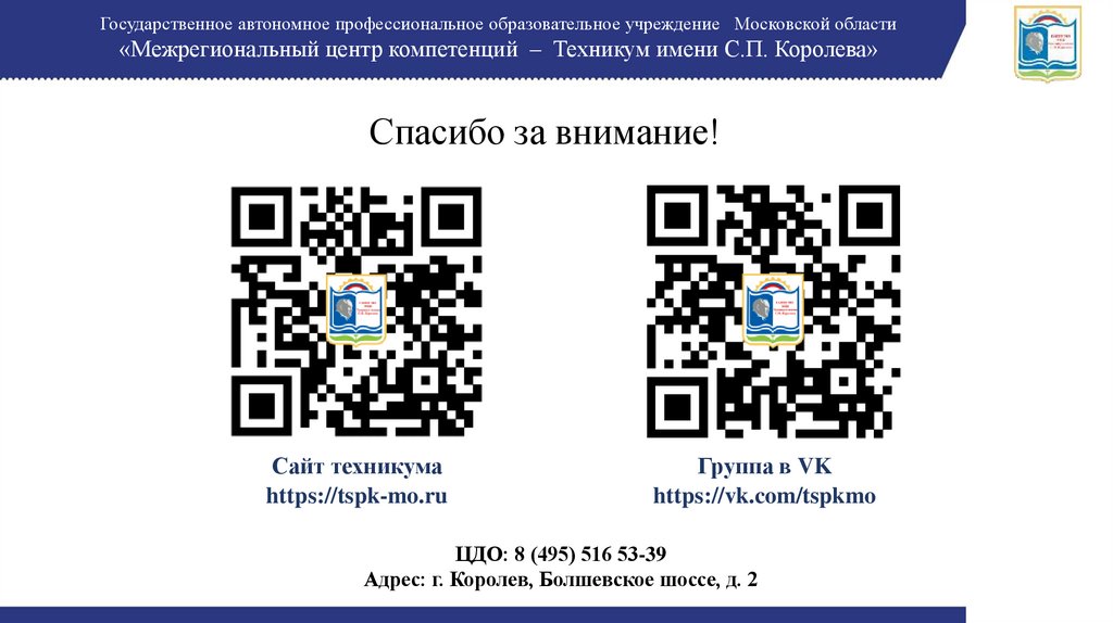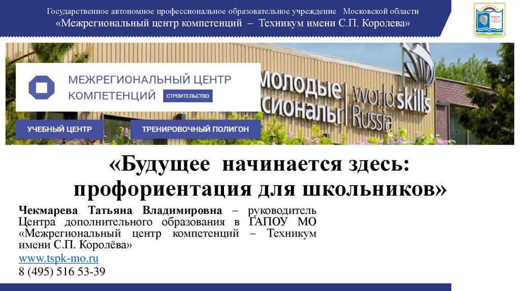 Государственное автономное профессиональное образовательное учреждение Московской области«Межрегиональный центр компетенций – Техникум имени С.П. Королева»