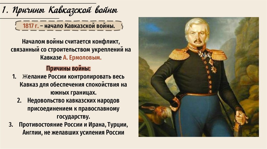 1. Причины Кавказской войны1817 г. – начало Кавказской войны.
