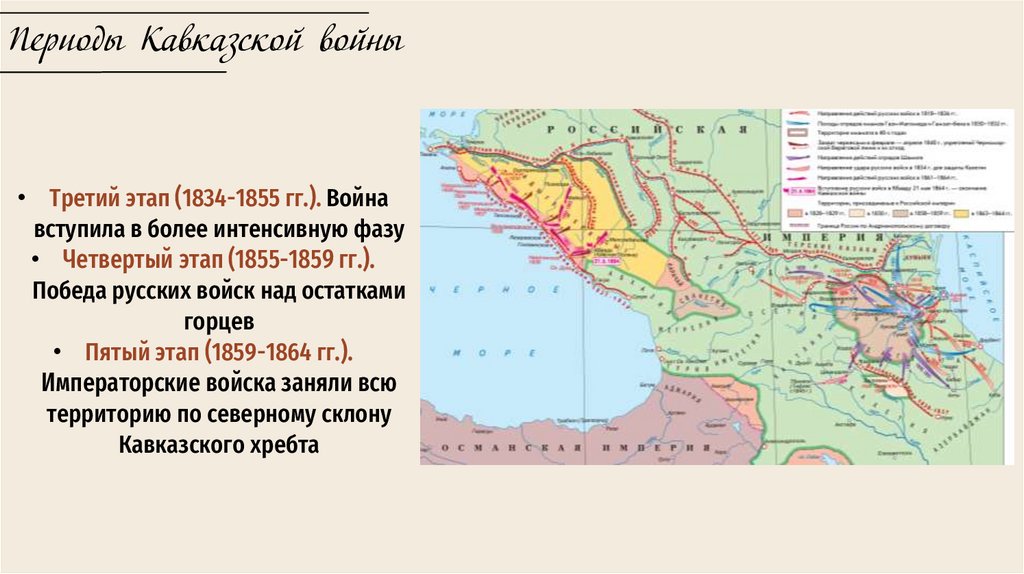 Периоды Кавказской войны• Третий этап (1834-1855 гг.). Война