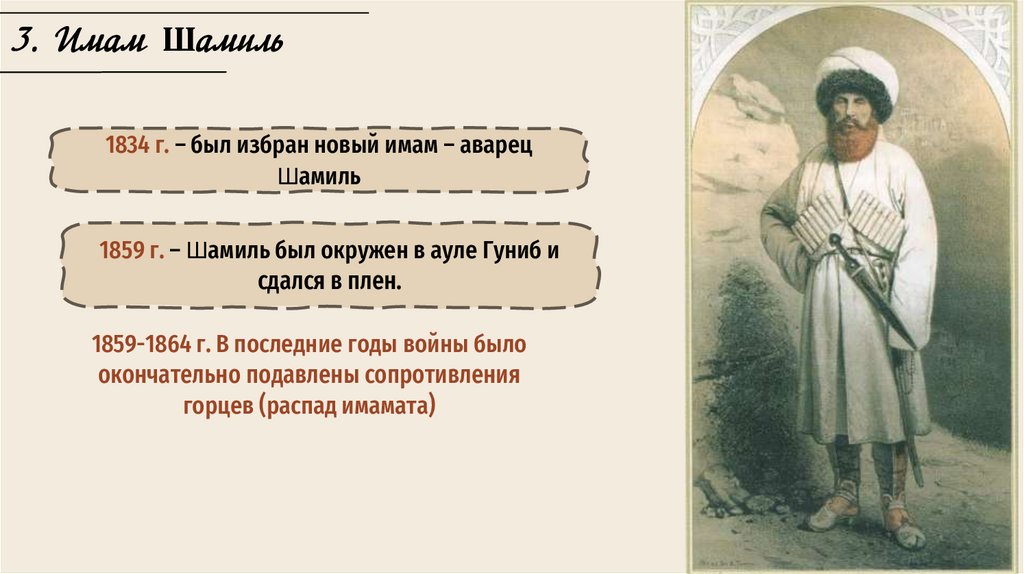 3. Имам Шамиль1834 г. – был избран новый имам – аварец