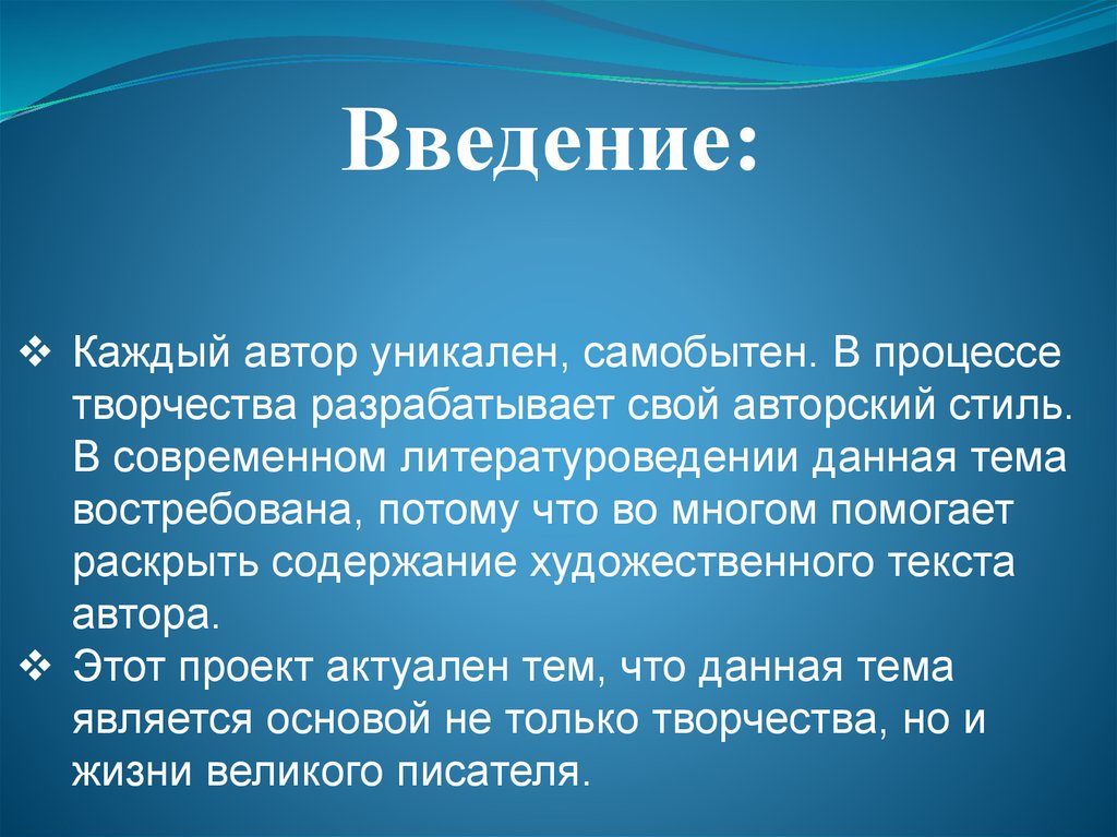 Введение:Каждый автор уникален, самобытен. В процессе