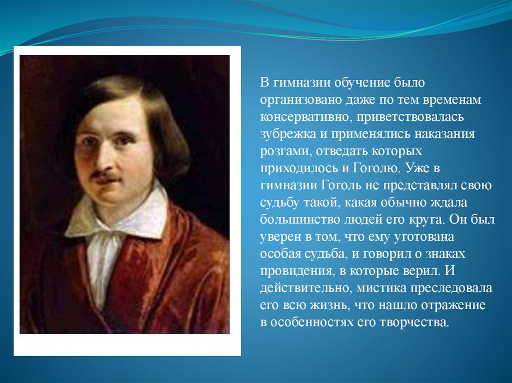 гимназии Гоголь не представлял свою
