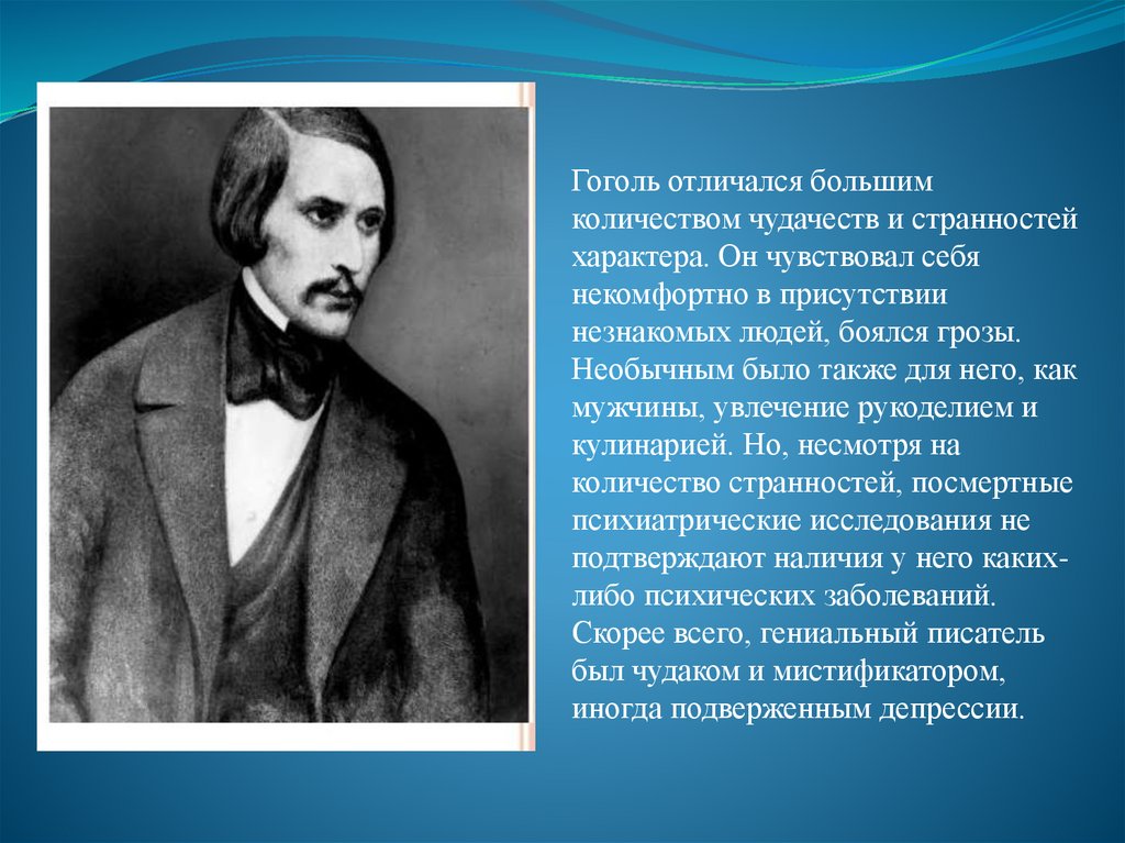 Гоголь отличался большимколичеством чудачеств и странностей