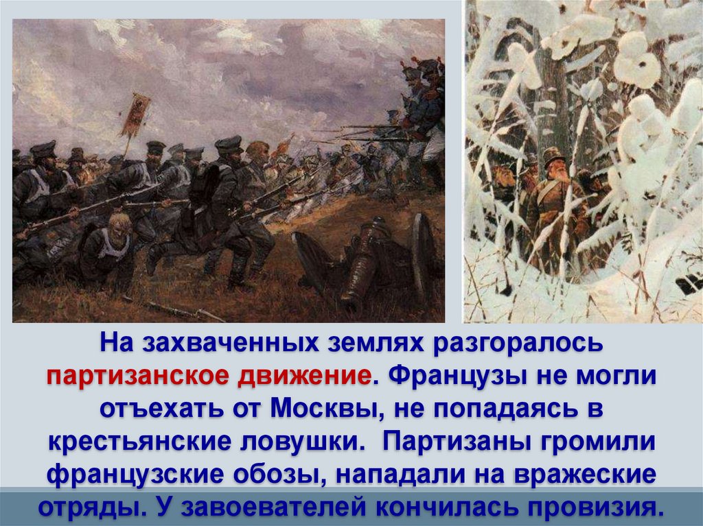 На захваченных землях разгоралосьпартизанское движение. Французы не могли